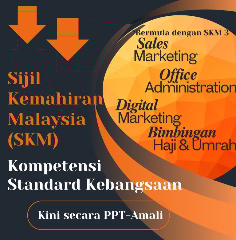 β Pengiktirafan SKM (JPK): Penilaian dilakukan mengikut standard kemahiran Malaysia β layak menerima Sijil Kemahiran Malaysia (SKM).